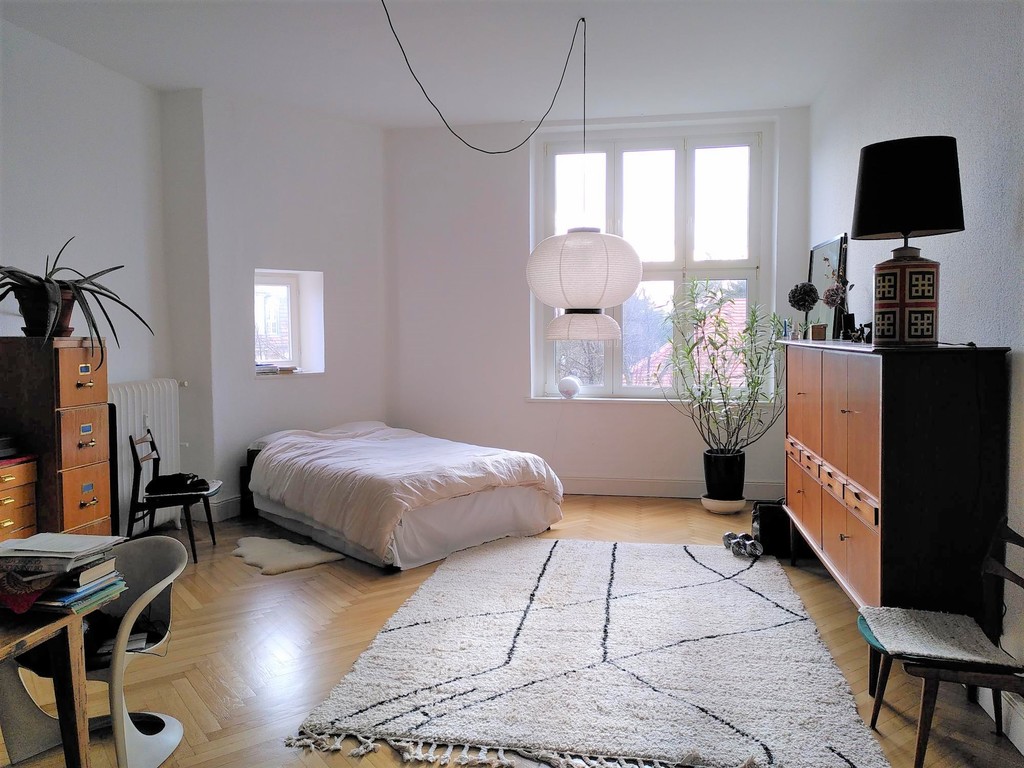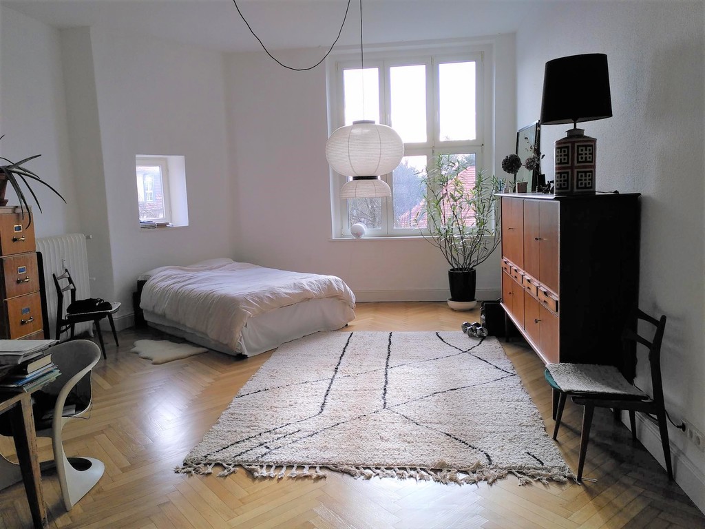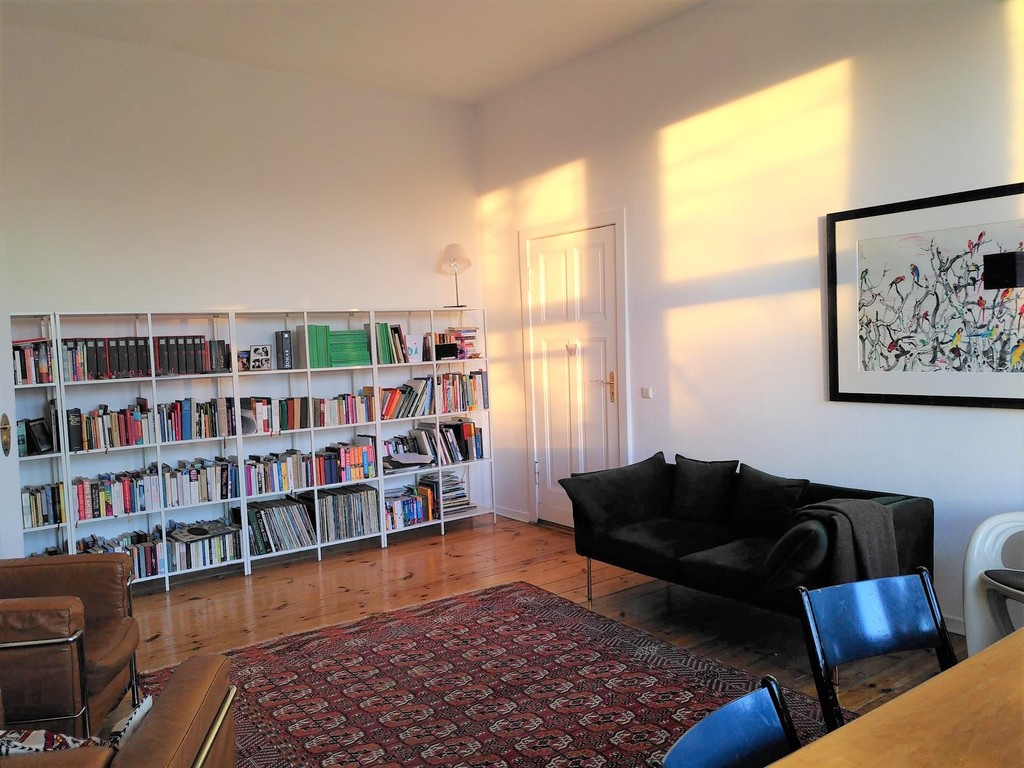 We live in a big and bright flat in a quiet western part of Berlin, close to the Grunewald and the historic Olympia stadium. The flat has three kids' rooms: One with a queen size bed, one with a bunk bed for two kids and a daybed, and one small and cosy teenager room. Next to the living room is our space – a bright and spacious room where we sleep and work. The apartment includes a bathroom and a guest toilet as well as a kitchen which is equipped with (almost) everything you might need.
