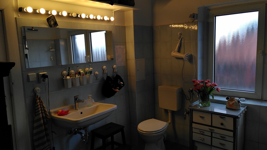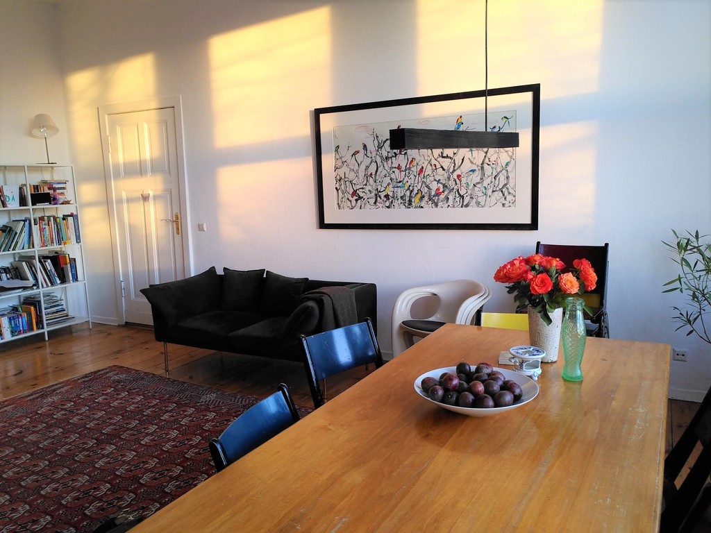 The house is a 100-year-old building without an elevator ( 4th floor!!!) or air-condition. But it has huge windows, a lot of sun, trees in front of the windows and enough space for a big family or group of friends. Of course we have toys for kids of different ages, a beamer to watch movies, games and a lot of books (mostly in German and English). The house is situated at a square with a playground where you can play football or table tennis or have a picnic.