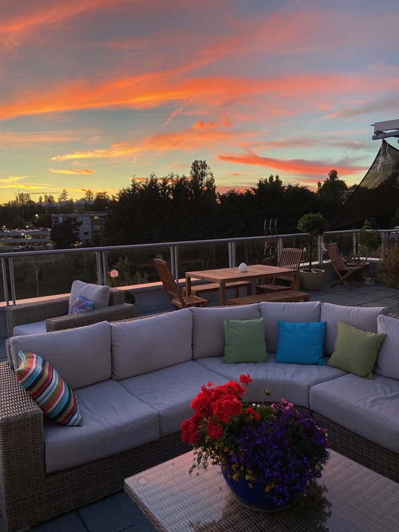 Our home is modern with an open concept living area. We have a large, well equipped kitchen (gas new fridge/freezer, dishwasher, garburator, microwave). We also have an outdoor kitchen (grill) on our patio. There is an in-suite washer and dryer. The den has has a very comfortable pull out sofa, and privacy blinds should someone use it as a spare bedroom.