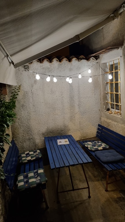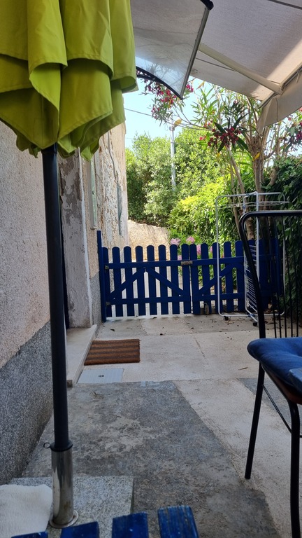 The house has very nice courtyard, ideal for sitting and dining outside, quiet and shady (grapevine shade) with a lemon tree and a flattering Bugenvilia tree and with a grill. It has another small and private place for sitting outside in front, in the sea direction, with a view to the nice garden.