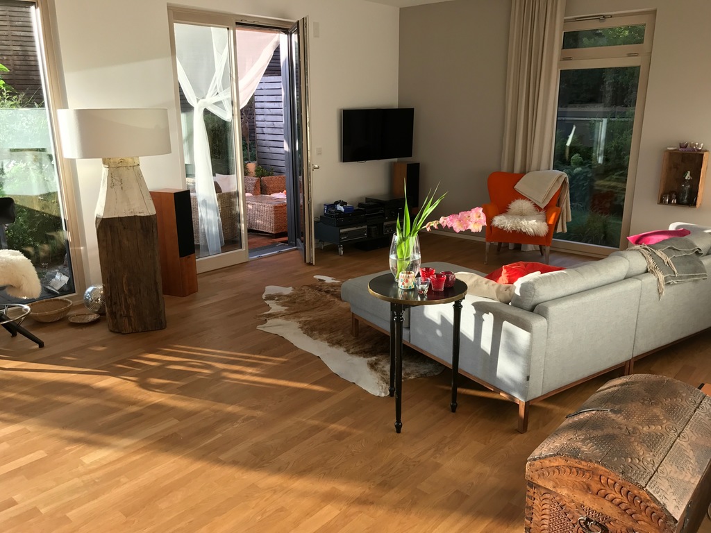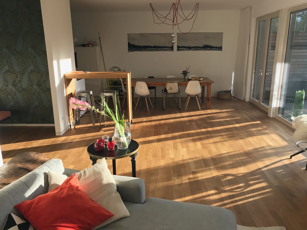 Without even having to cross the street, you can get to the S-Bahn station in a minute, where you have a connection to the city centre every 10 minutes. Our apartment is located in Westend (Charlottenburg) right at the side of the city-train (S3/S9), which crosses Berlin from west to east. You reach the sights and places without changing train: Charlottenburg/Kurfürstendamm (10 min.), Savignyplatz/Zoo (13 min.), Main Station, Friedrichstrasse, Hackescher Markt, Alexanderplatz, Warschauer Straße (20-30 minutes). And yet, thanks to the closeness of Grunewald forest and the lakes, the area offers leisure time activities like cycling, running, water sports, tennis, beach volleyball and horse-riding. Our apartment has a living area is of approx. 120 sqm, all modern comfort and a nice garden with a south-west terrace. A spacious joint garden with a playground for children and a view into the landscaped park. We look forward to hear from you!