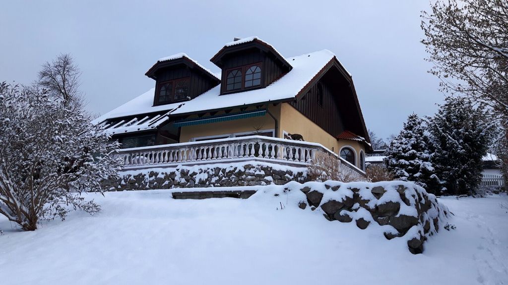 Our house features 150 m² living space plus 70 m² basement. It includes 2 bedrooms, 1 children's room, 1 bathroom, 2 toilets, 1 kitchen, 1 open, big livingroom with a winter garden, 1 terrace, a barbeque area, 1 sauna, 1 laundry, 1 big fireplace in the livingroom. Moreover the house has got 4 double beds (2 in children's room, 1 in master bedroom, 1 in the basement), 1 bed couch in the livingroom for 1-2 persons and 1 mobile inflatable bed. Internet/WLAN as well as 2 TV-sets (satellite) are available too.