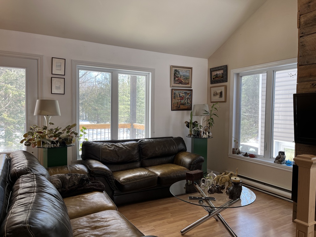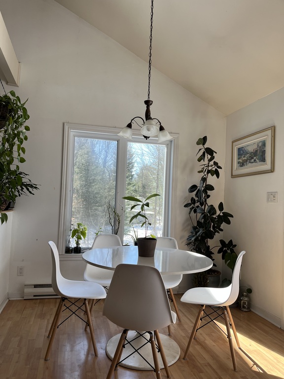 In Quebec's Monteregie, in the wonderful Village-Relais of Acton Vale, on an 2 acre treed lot, you will find our comfortable bungalow with attached garage. The ground floor includes living room, dining room and a fully equipped kitchen, two bedrooms and a large bathroom. In the basement, you will find another bedroom, a large family room, a powder room and laundry.