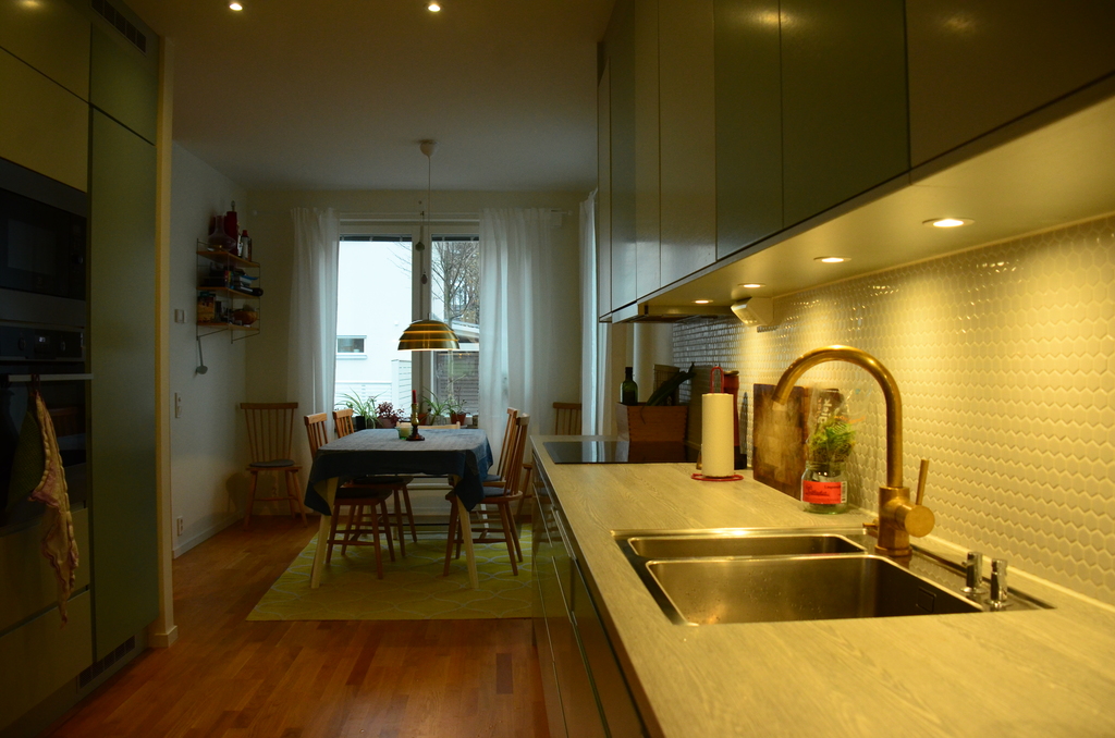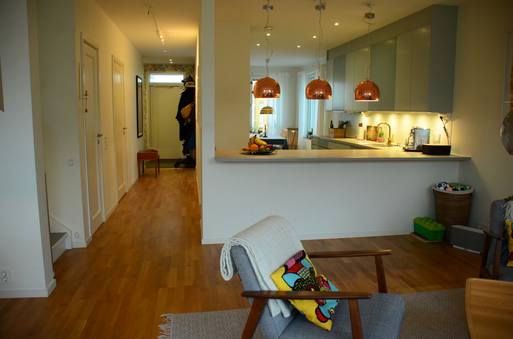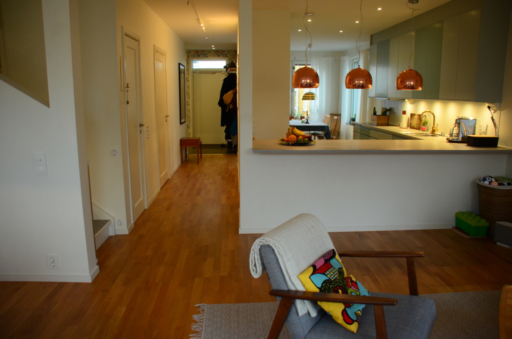 The house, a modern large family home built in 2016, is situated in a typical suburbian area in Stockholm, about 25-30 min commute ( 20-25 by car) to the city center of Stockholm. The area is very family friendly without any traffic, a small playground on our doorstep and several activities for children in the area.