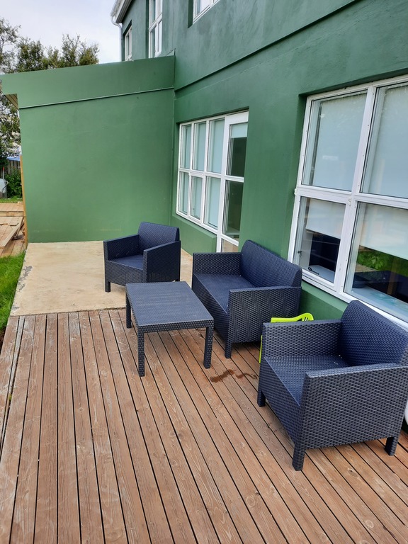 The bus stop is a minute walk and the bus goes straight to Reykjavík city centre and to one of the shopping malls (Kringlan).
