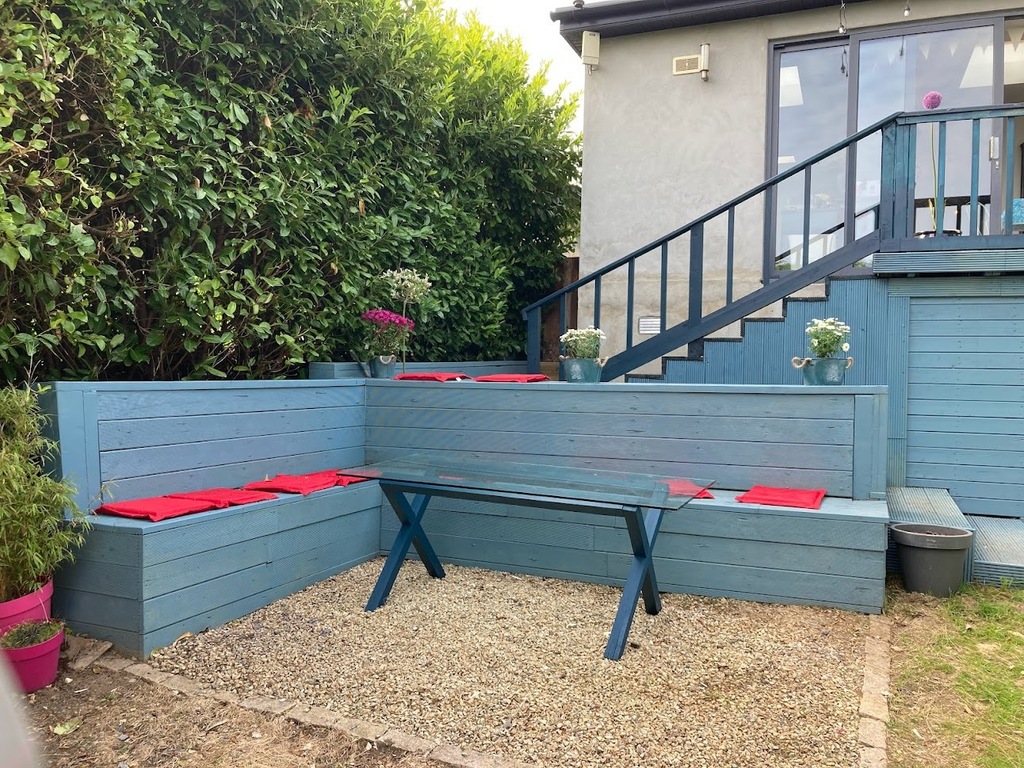 Very spacious family home with child-friendly garden of swings, playhouse, slide, trampoline and seating areas for adults to relax and enjoy while the children play.